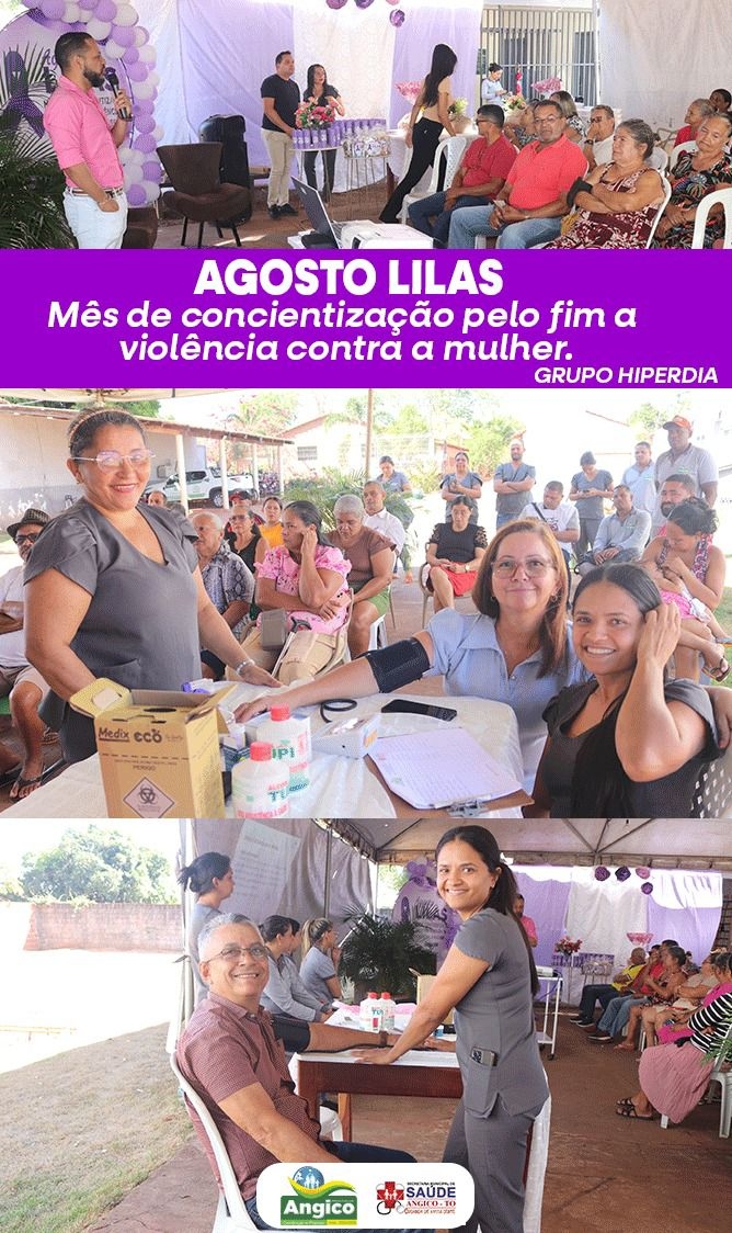 Um outro momento das ações do agosto lilás, mês das ações de mobilização, prevenção e fortalecimento da rede de proteção às mulheres, o qual faz alusão a data da Lei Maria da Penha, foi de uma parceria da Secretaria Municipal da Mulher juntamente com a Secretaria Municipal de Saúde com o grupo de HiperDia, sendo este “HiperDia” um programa do Sistema único de Saúde que visa cadastrar e acompanhar pessoas com hipertensão e/ou diabetes. O momento foi realizado na UBS – Unidade Básica de Saúde Padre Anacleto com a palestra ministrada pelo Gerente de Promoção de Igualdade Social, Equidade e Direitos da Mulher, que explanou o tema deste ano “Não deixe chegar ao fim da linha, ligue 180.
