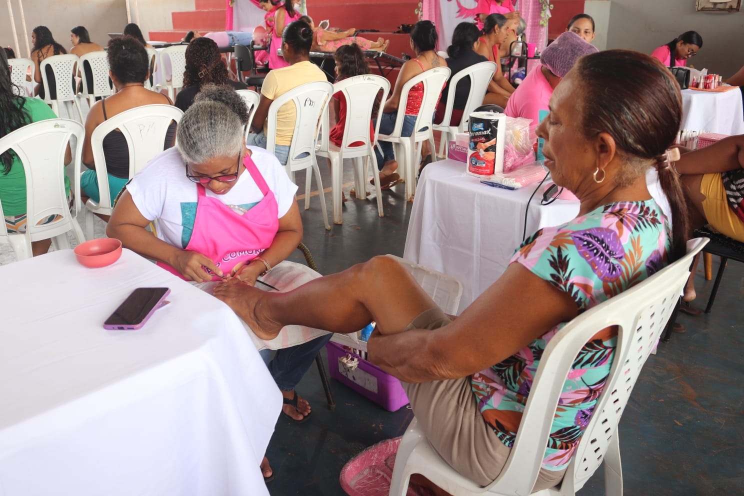 Encerrando a programação, no dia 06 de março, ocorreu a culminância do Projeto Mulher Preciosa, com um momento especial dedicado ao cuidado e à valorização das mulheres. Na ocasião, profissionais das áreas de estética e beleza foram convidadas para realizar atendimentos de cabeleireira, depilação, design de sobrancelhas, manicure e pedicure, destinados a mulheres e adolescentes a partir de 15 anos, proporcionando um dia de acolhimento e fortalecimento da autoestima.