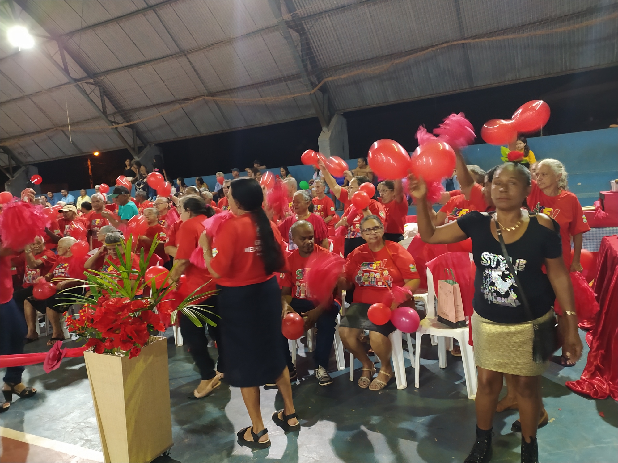 O que justifica o projeto é a necessidade que esta faixa etária apresenta, de ter uma vida mais dinâmica, criativa, recreativa, onde os idosos possam desfrutar de interação social onde convive, tendo inclusão do seu potencial, de suas capacidades e talentos, reunidos aos conhecimentos e experiências alcançadas ao longo de sua vida. Partilhando de forma efetiva no meio familiar e na comunidade. Propomos com este projeto, dar ao idoso uma nova perspectiva de vida com novo olhar. Aprender novos saberes, superar os limites oferecidos. Além de proporcionar ao público alvo momentos de muita descontração e diversão, com apresentações e competição de teatro, dança, desfile, música e imitação etc. queremos aqui agradecer a presença dos municípios de Ananás, Nazaré e Palmeiras. E também aos idosos do nosso Município. O evento contou com a participação de várias autoridades: Prefeito Junior Noleto e a Primeira Dama e Secretaria de Assistência Social Sônia Regina do Município de Palmeiras, o Prefeito Clayton Paulo, a Primeira Dama Vanessa e o Secretário de Assistência Social Valdiney do Município de Nazaré, Vice-Prefeito Idemar Formiga e a Secretaria de Assistência Social Marta Camila do Município de Ananás, a Vice-Prefeita Ieda Miranda, a Primeira Dama Eliana Cássia e o Prefeito Cleofan Barbosa Lima de Angico a Secretaria de Assistência Social Deusivan, os Vereadores de Angico: Denilton Gonçalves, Cleomam Pereira, Laelton Martins, João Filho, Apoliana Carneiro e os Secretários Municipais Helena Teixeira Secretaria de Administração, Romilson Borges Secretário de Finanças, Carmelita Saraiva Secretária de Educação, Katiane Cavalcante chefe do Controle Interno, Sergio Miranda Secretário de Saúde, Sebastião Guimarães Secretário de Meio ambiente, Samuel Victor Secretário de Esportes e o Secretário de Transportes Ivan Borges.